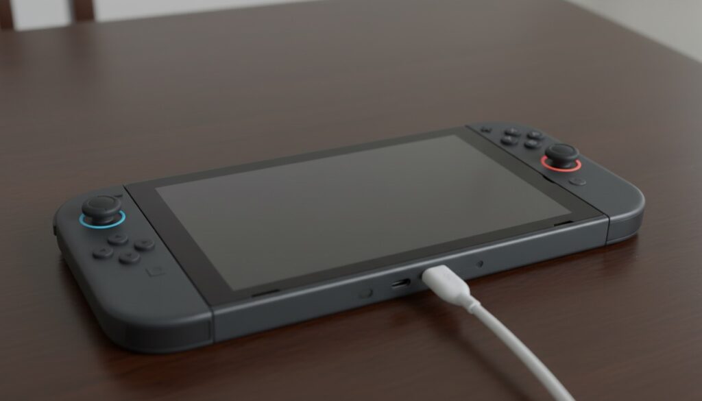 純正品以外のACアダプターや出力の低いモバイルバッテリー、安価なUSBケーブルでは、Switch2が必要とする電圧・電流を安定して供給できないことがあります。充電が途中で止まったり、そもそも始まらなかったりするのはそのためです。